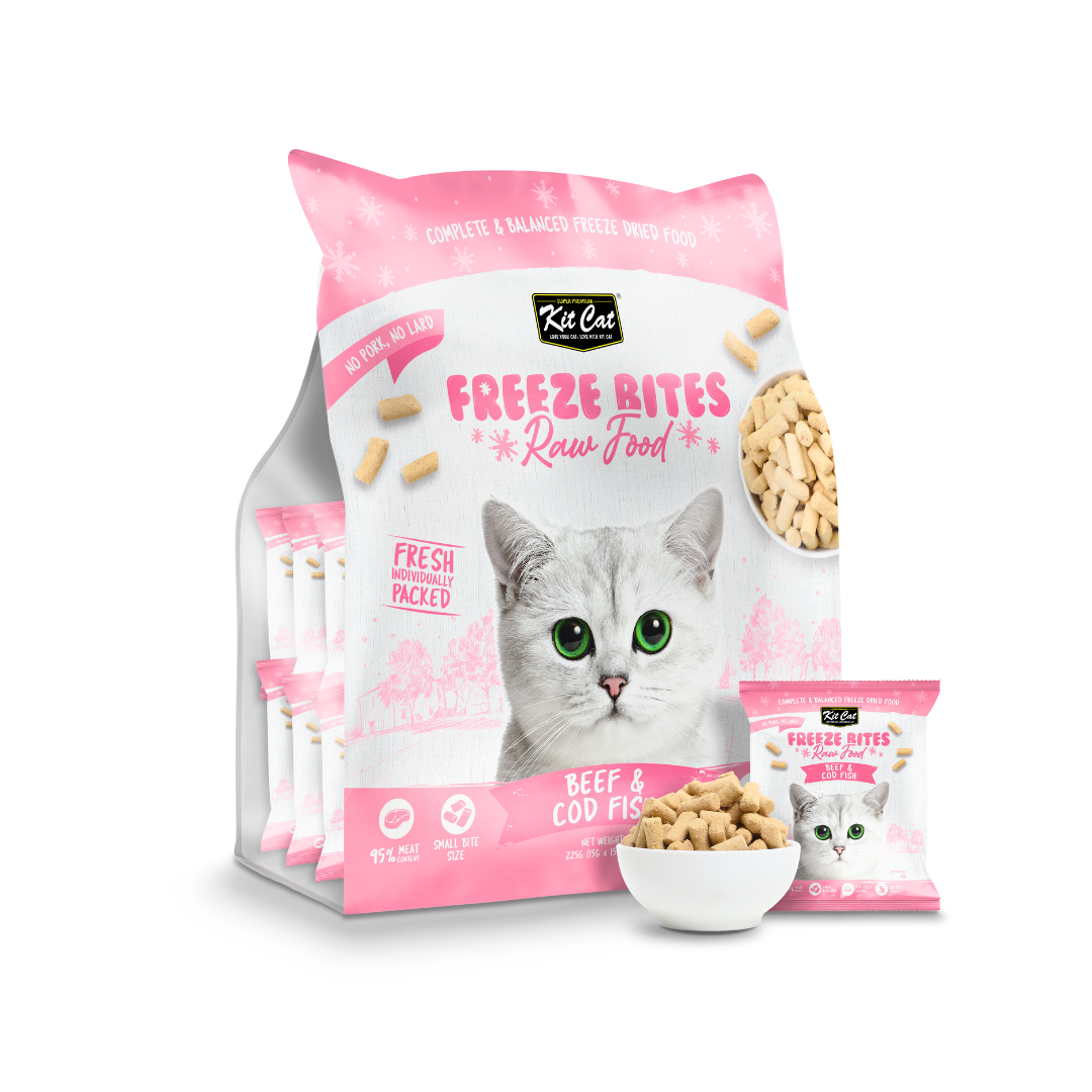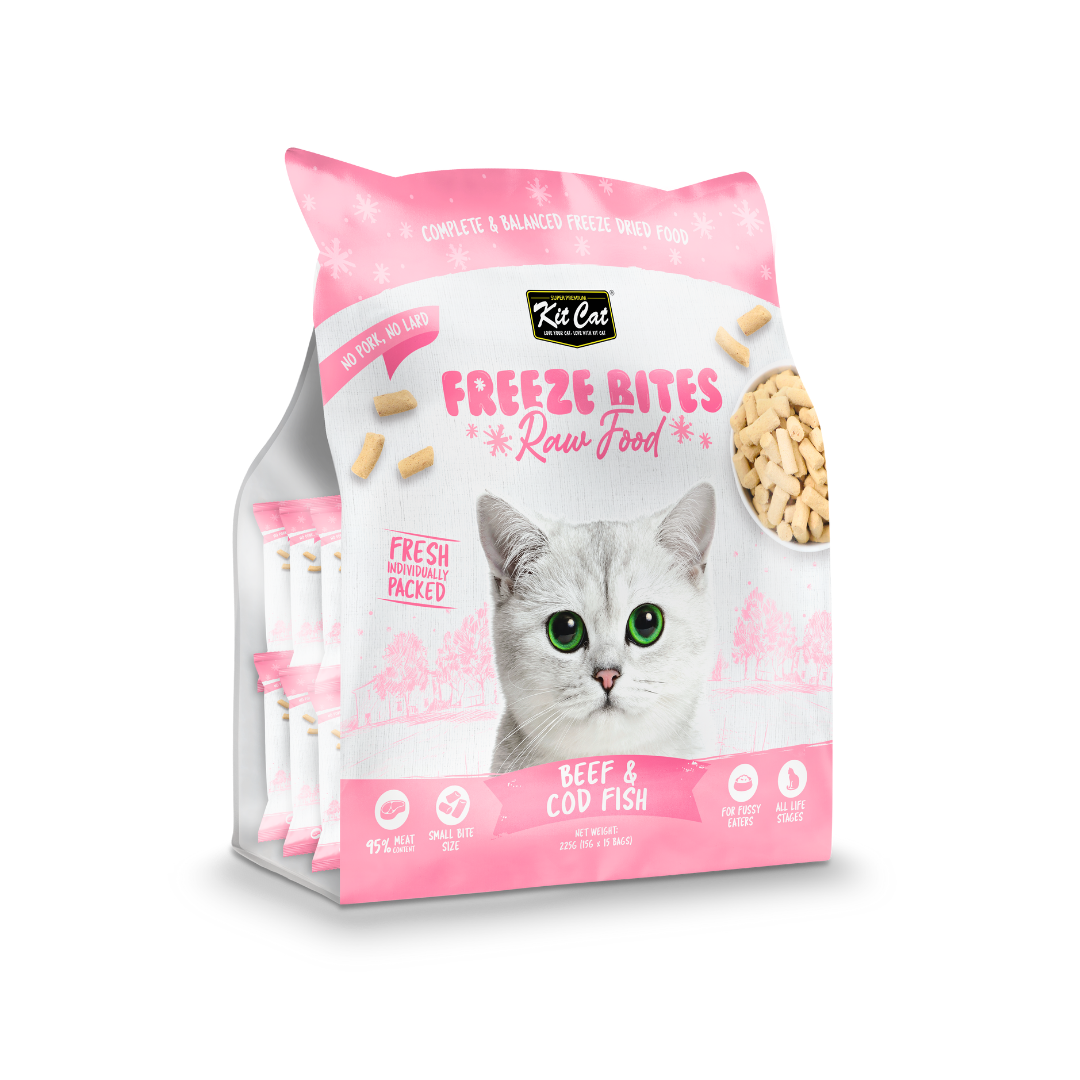 • Kit Cat Freeze Bites Raw Food Beef & Cod Fish