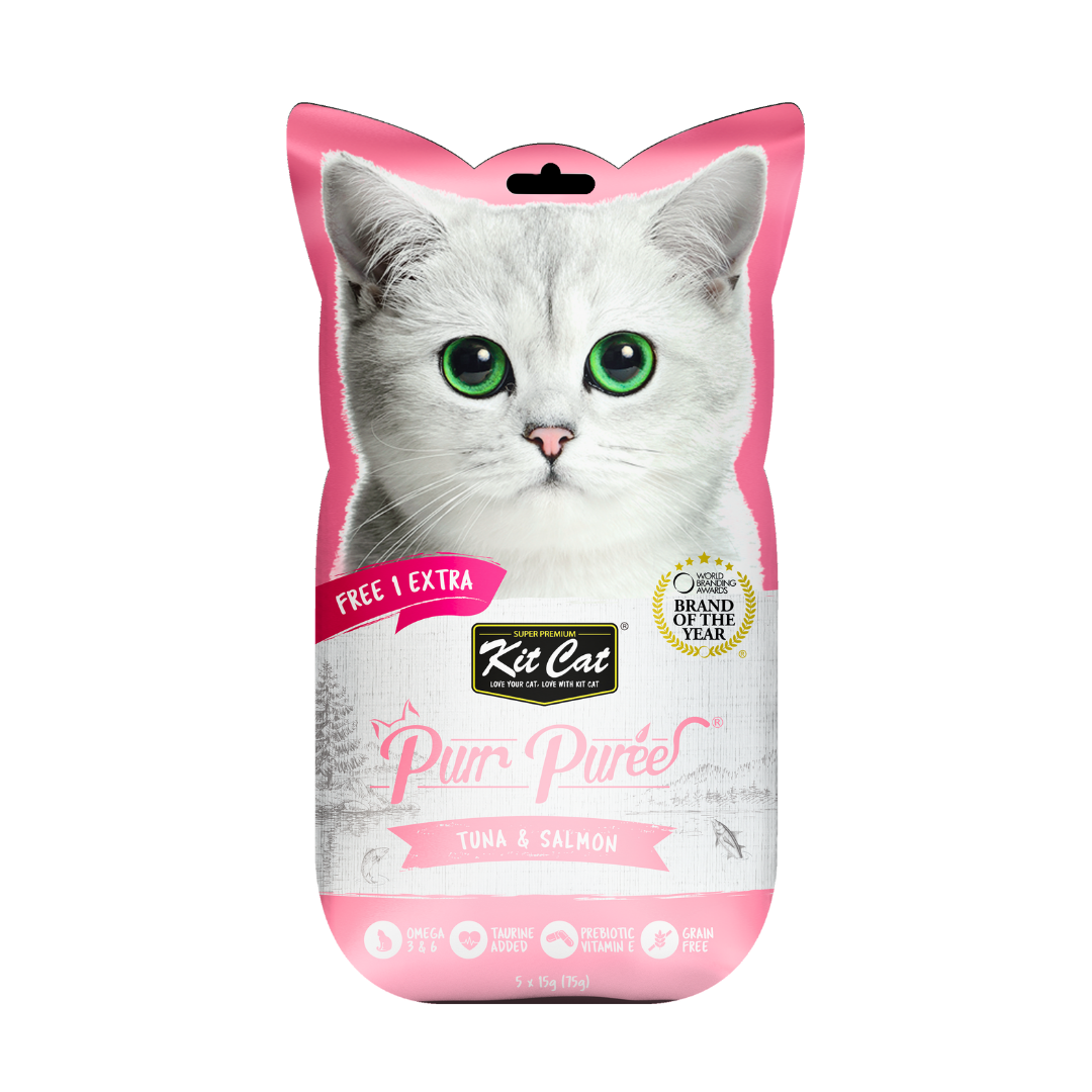 - Kit Cat Purr Puree® cat treats are intended for intermittent or supplemental feeding only. Serve at room temperature. Do not microwave the sachet.